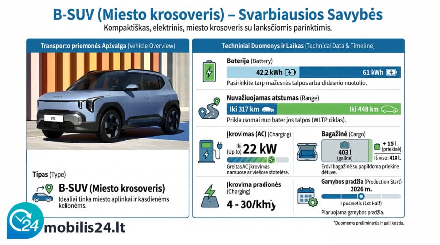 „Kia“ toliau nuosekliai didina savo elektromobilių pasiūlą ir pristato naujausią šeimos narį – „Kia EV2“. Tai mažiausias gamintojo elektrinis modelis, kuris B-SUV segmente užims svarbią vietą.